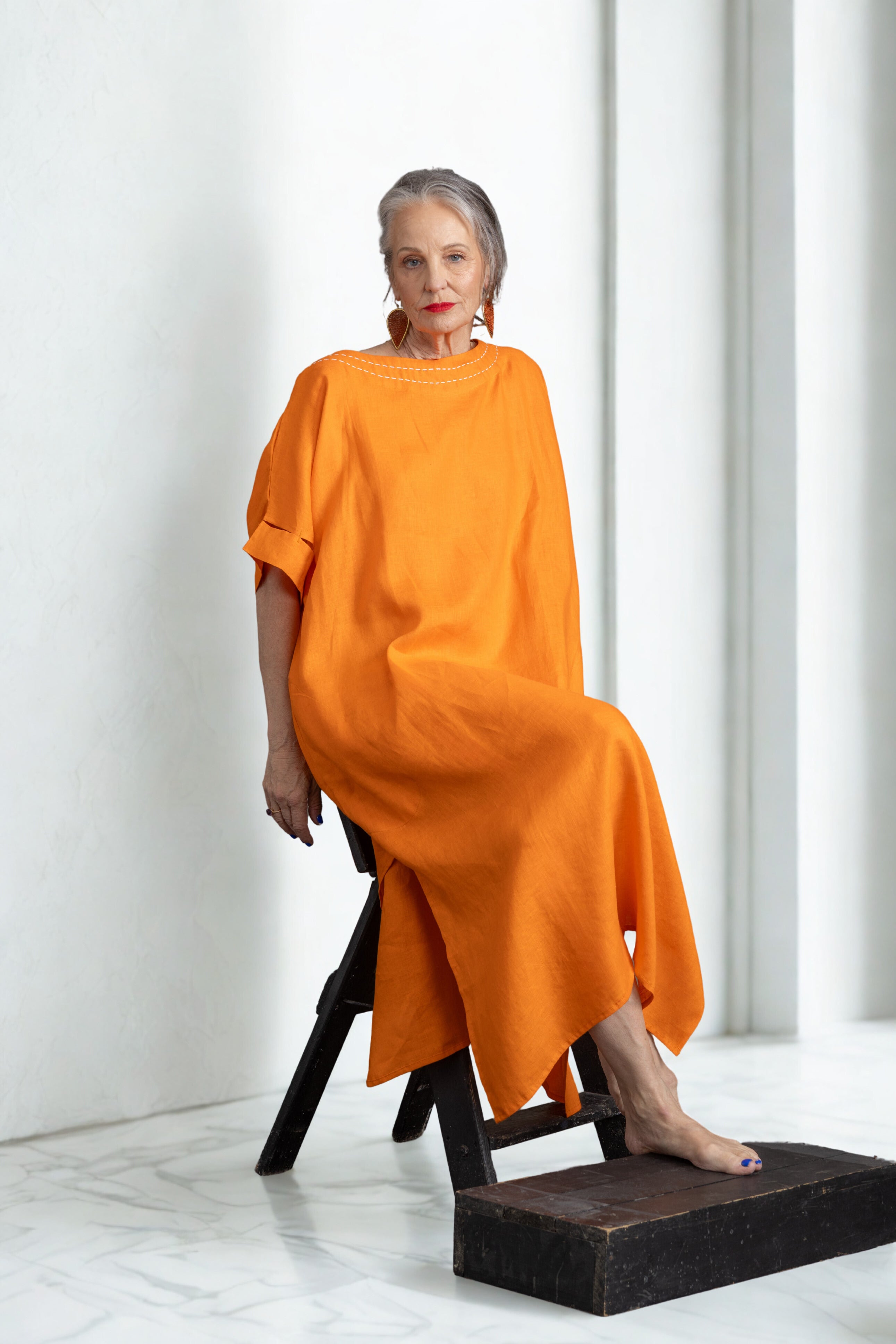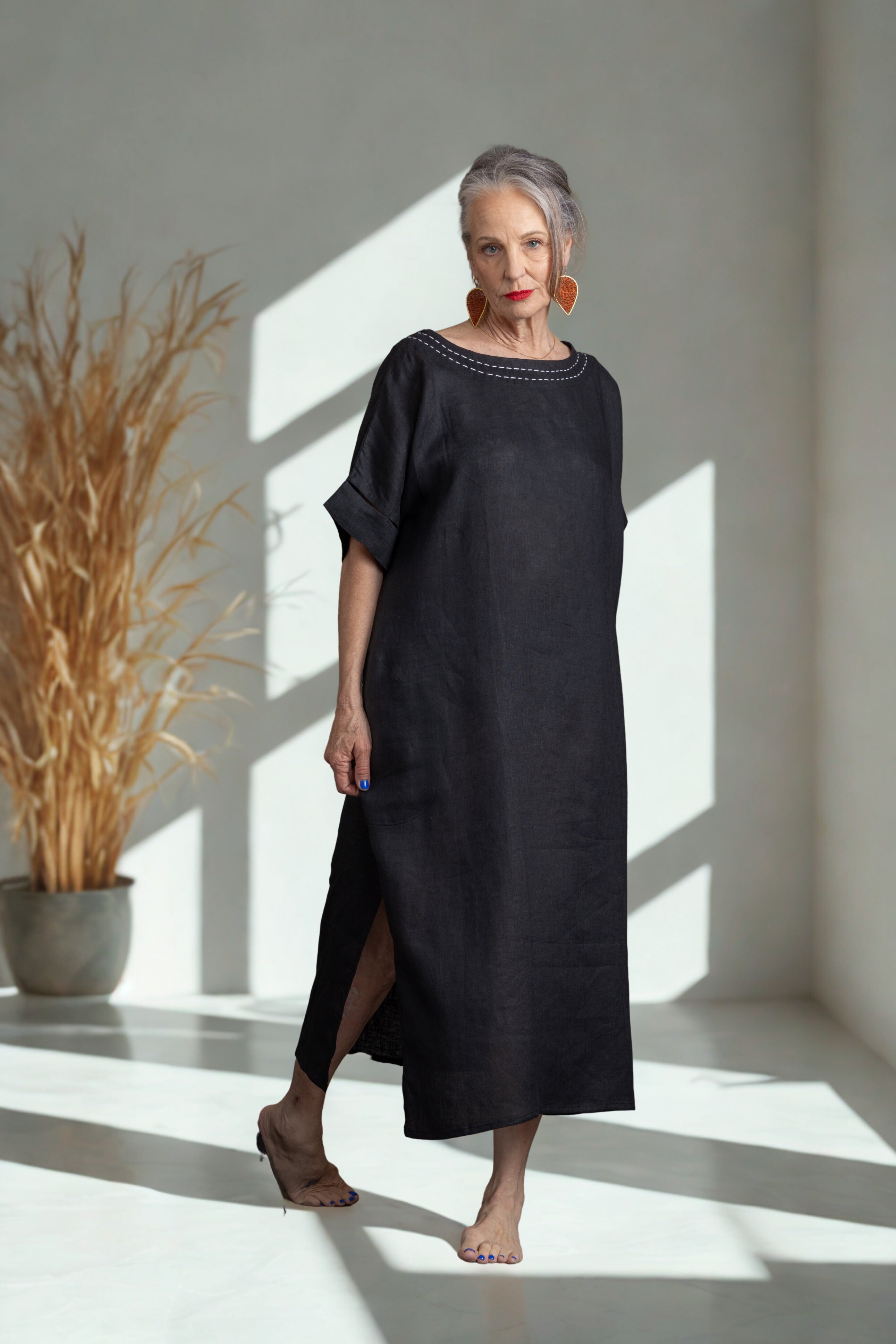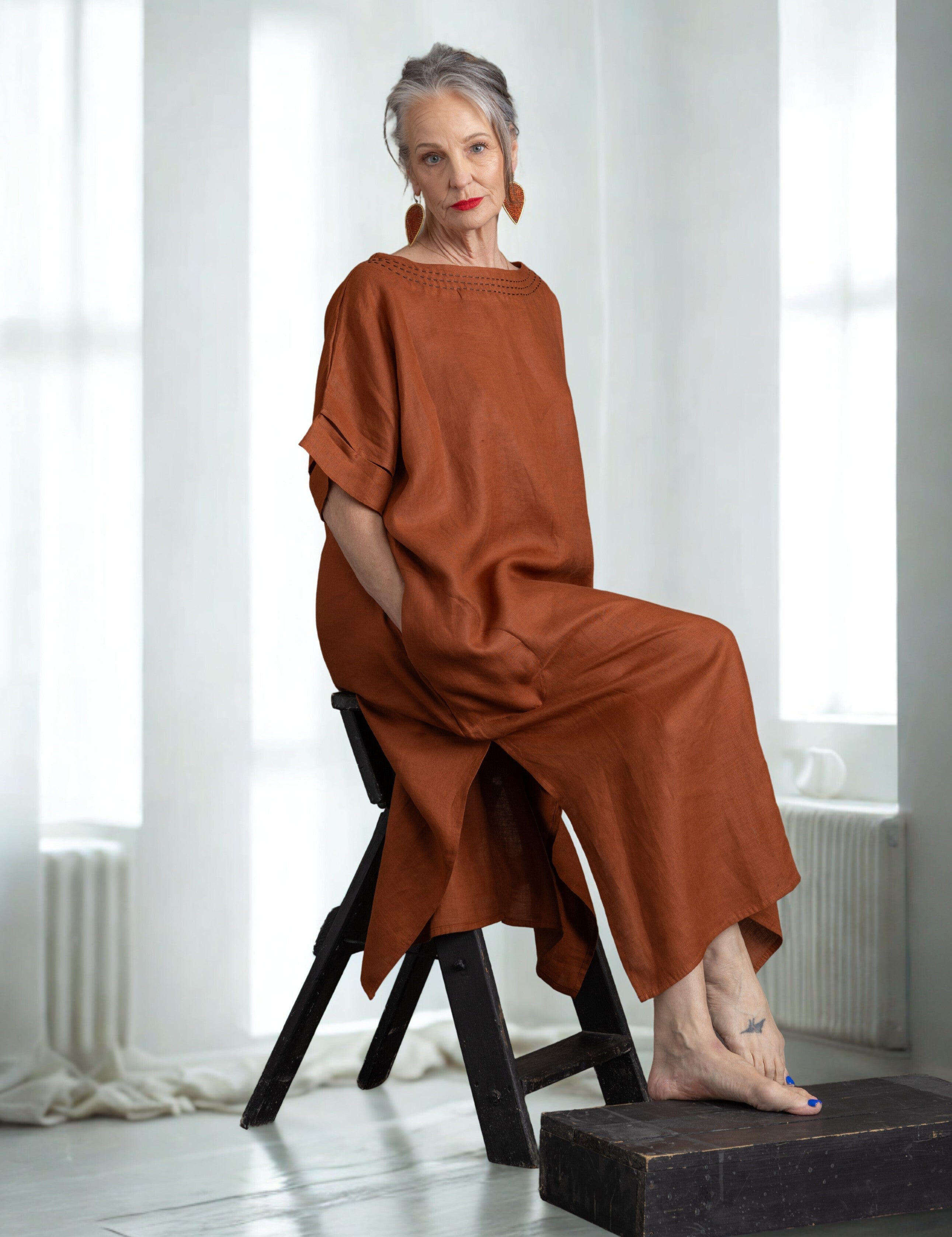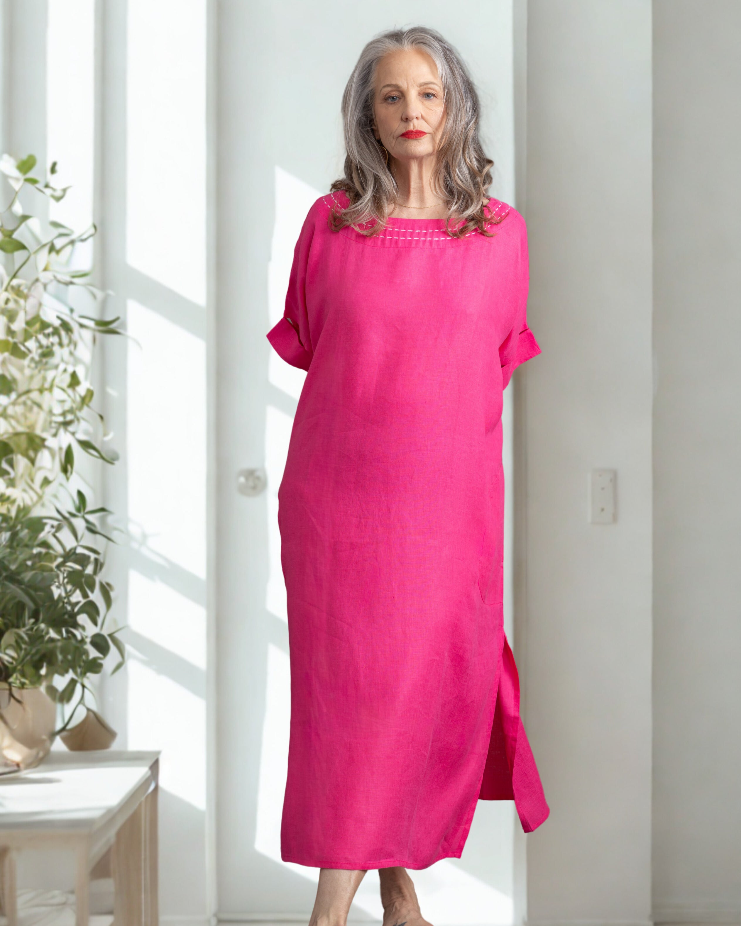 Crafted from pure pre-washed linen, it drapes beautifully in a straight, fluid line that flatters every shape.