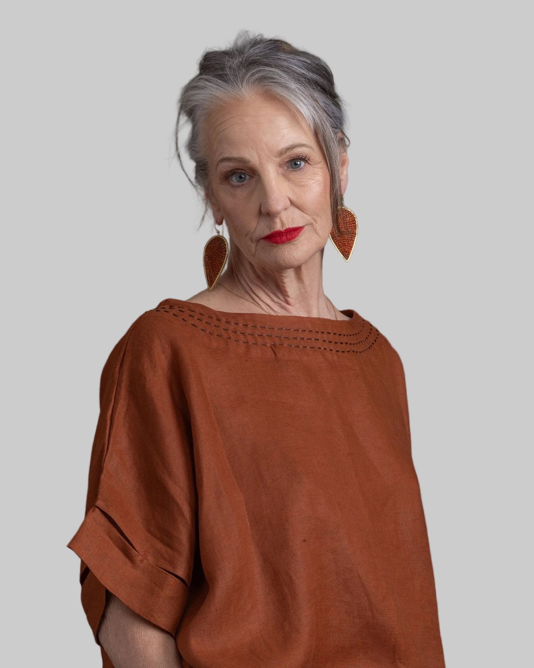 Dropped shoulders and short sleeves enhance Naomi’s ease, while subtle side splits at the hem allow gentle movement and flow.